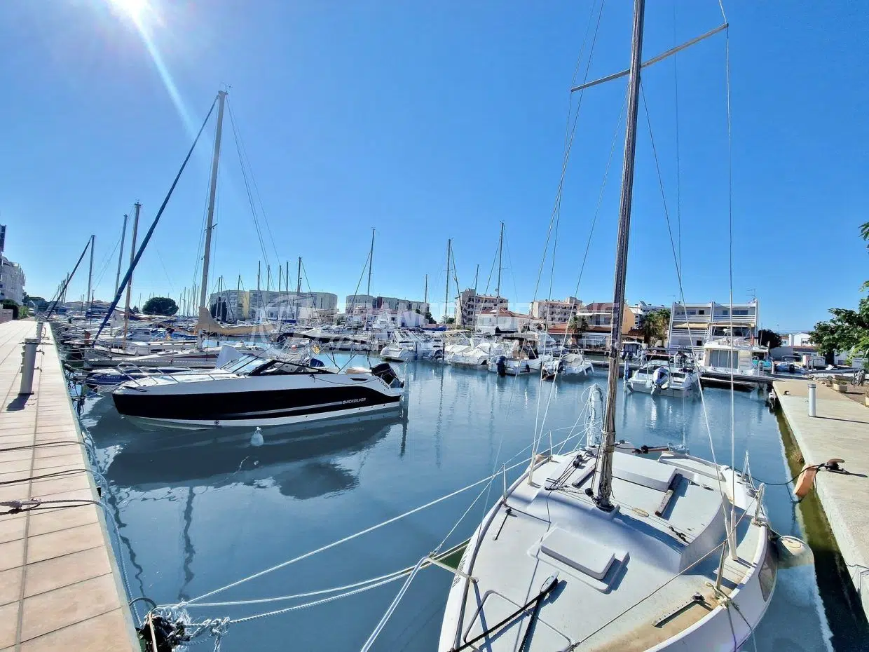 Descobreix aquesta encantadora casa de 84 metres quadrats m² Idealment situat en una residència única amb piscina comunitària, a prop de la platja i de les botigues. Perfecte per a un estil de vida tranquil amb accés directe a esports aquàtics gràcies al seu amarratge.
