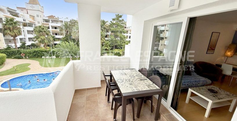 Confortable appartement, grande terrasse vue piscine/jardin – Proche plage et commerce